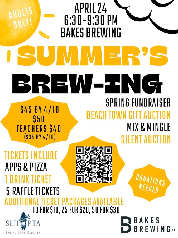 Come join us at Bakes for Spring Lake Heights' PTA Spring Fundraiser: "Summer's Brew-ing"!